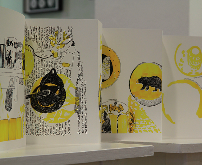 Since the kitchen has been a place of experimentation for many women artists since the 1970s, I chose to draw all the objects in my kitchen and associate them with writings and quotations from Agnès Varda’s films, extracts from her dialogues and songs, and reflections on her work based on interviews. I added recent political events that I felt were important: the war in Ukraine, the women’s demonstrations in Afghanistan, the treatment of animals in slaughterhouses.